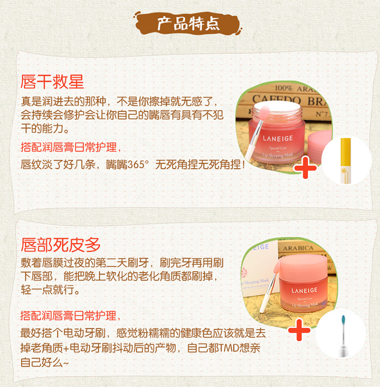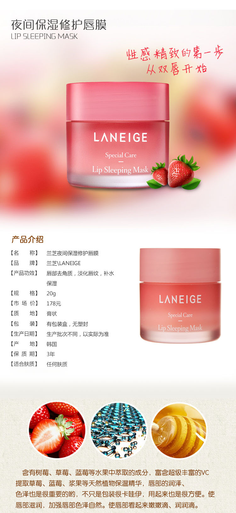 韩国正品Laneige兰芝睡眠唇膜滋润保湿淡化唇纹唇色唇部去...