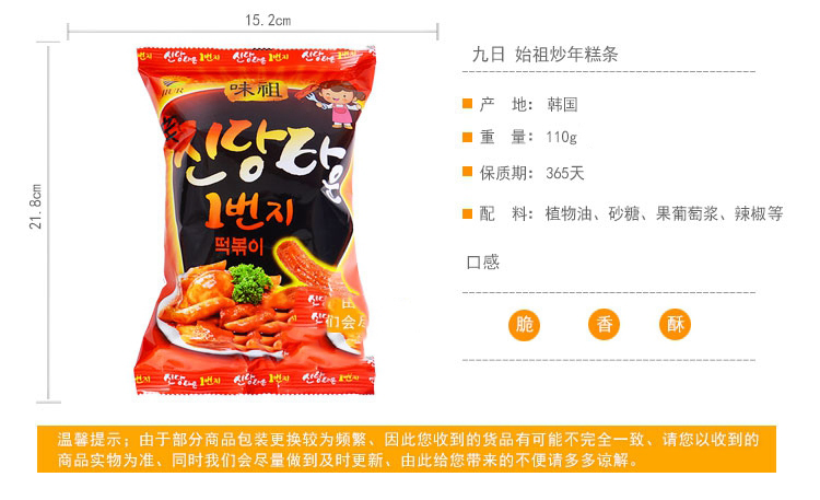 韩国进口零食品 九日始祖炒年糕条110g香脆甜辣膨化打糕条