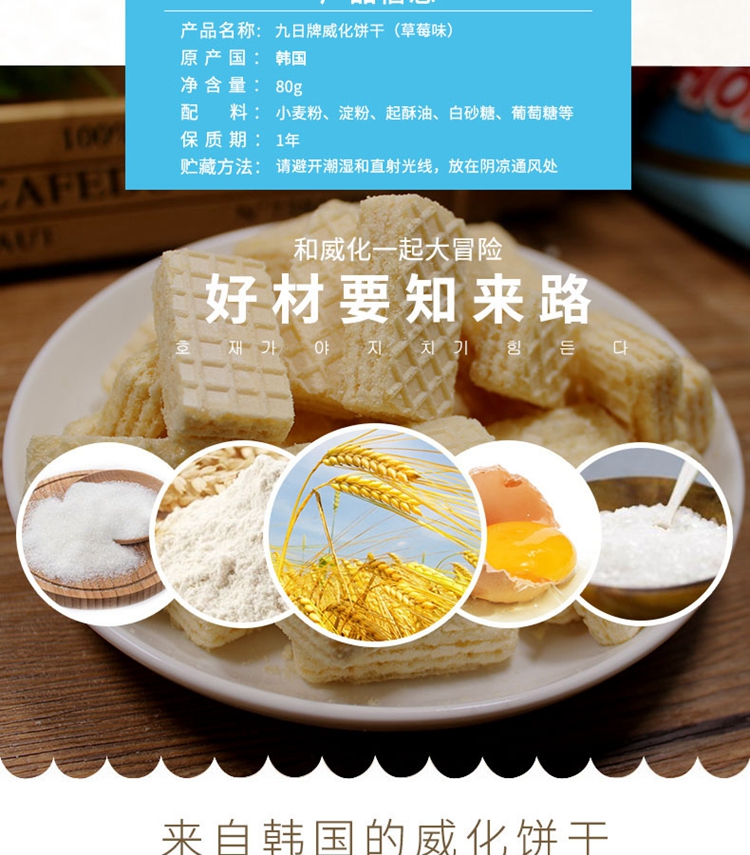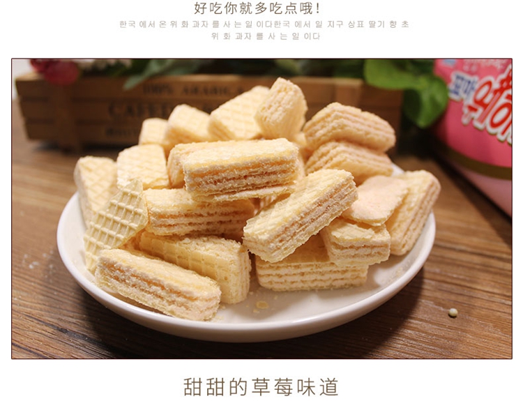 韩国进口零食九日牌威化饼干草莓味80g休闲零食