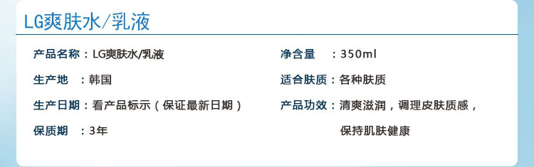 LG男士水乳套装韩国男士爽肤水男士润肤乳正品保湿清爽细腻350ML