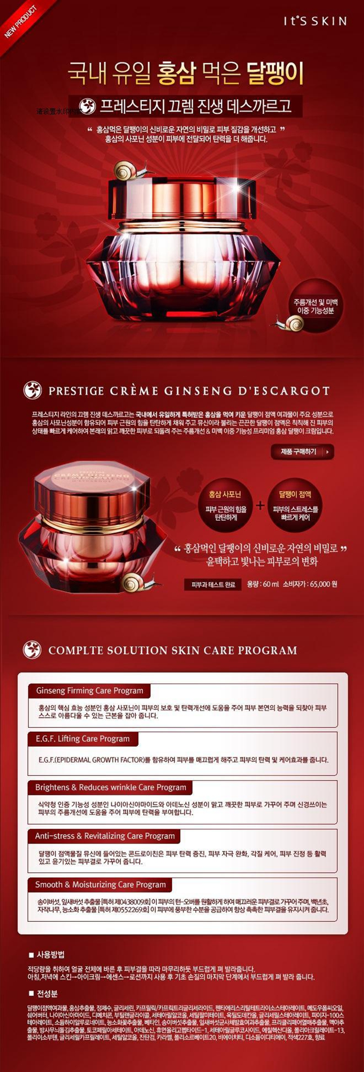 韩国专柜正品It's Skin伊思红参蜗牛霜60ml修复红蜗牛膏面霜抗皱