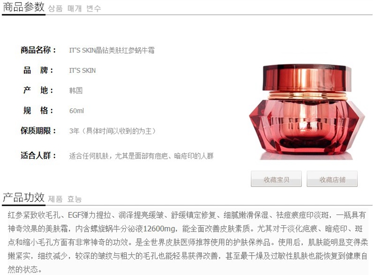 韩国专柜正品It's Skin伊思红参蜗...
