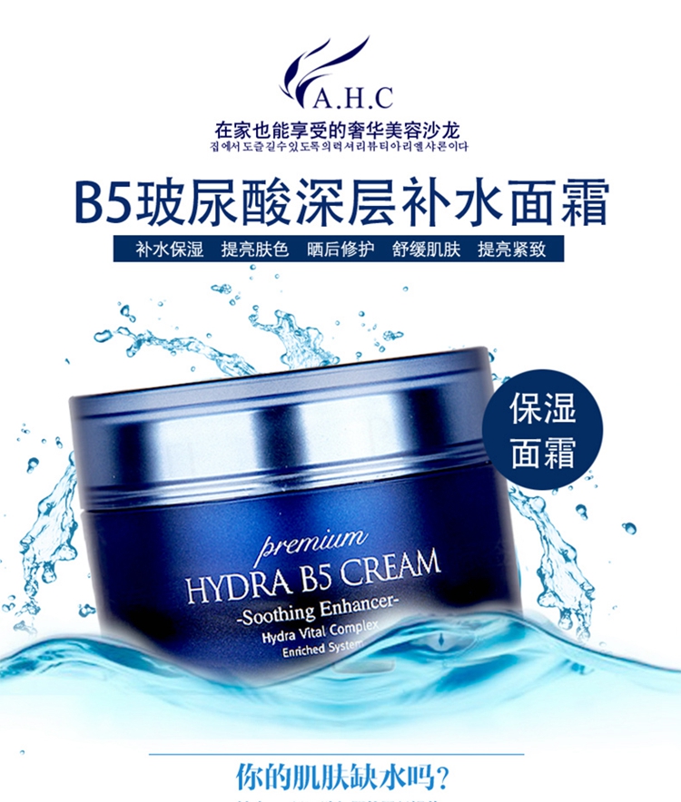 韩国AHC第二代B5玻尿酸面霜50ml透明质酸保湿补水面霜滋养肌肤