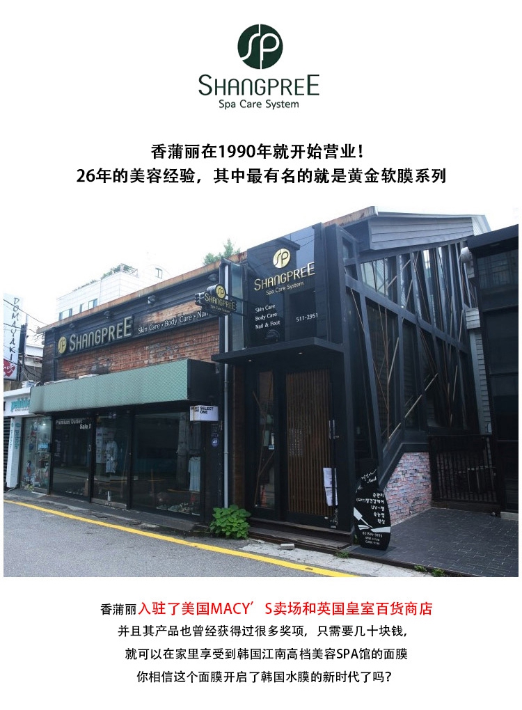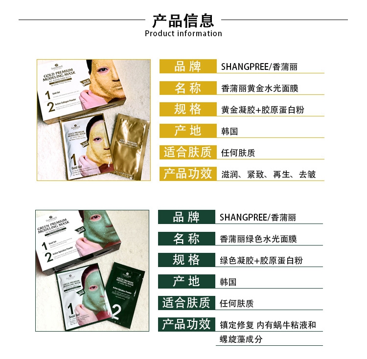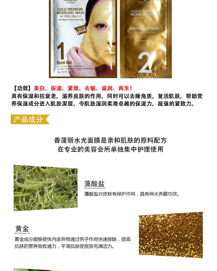 韩国正品SHANGPREE香蒲丽面膜黄金水光软膜敷面滋润紧致