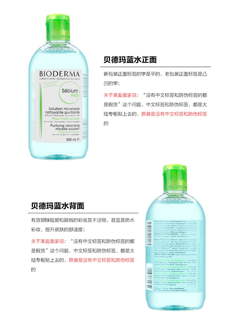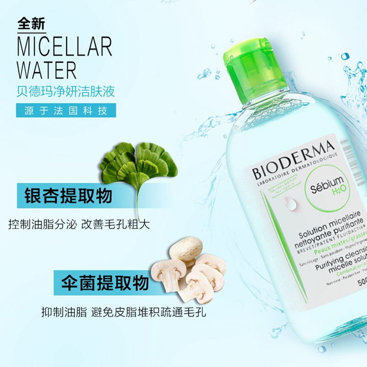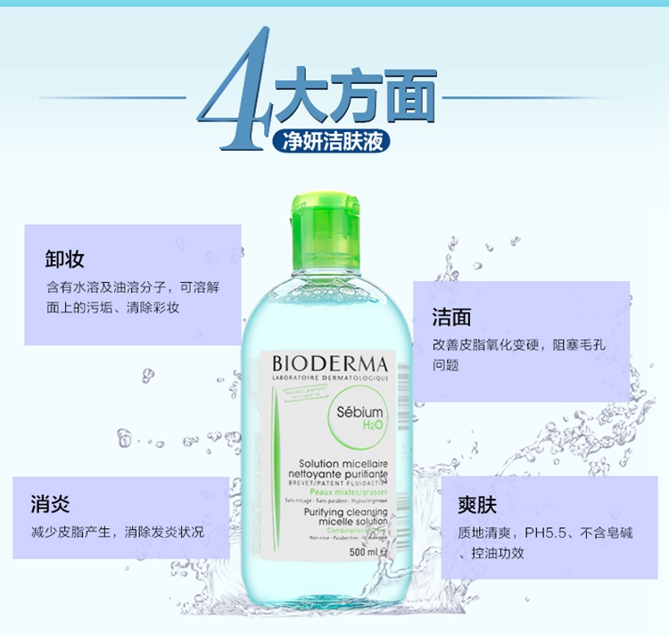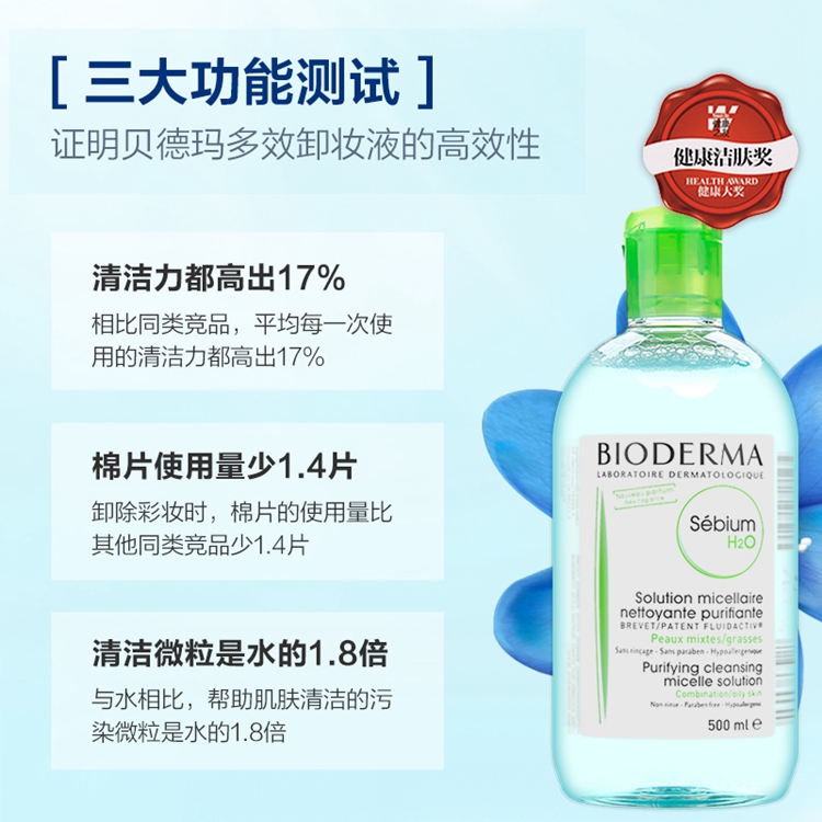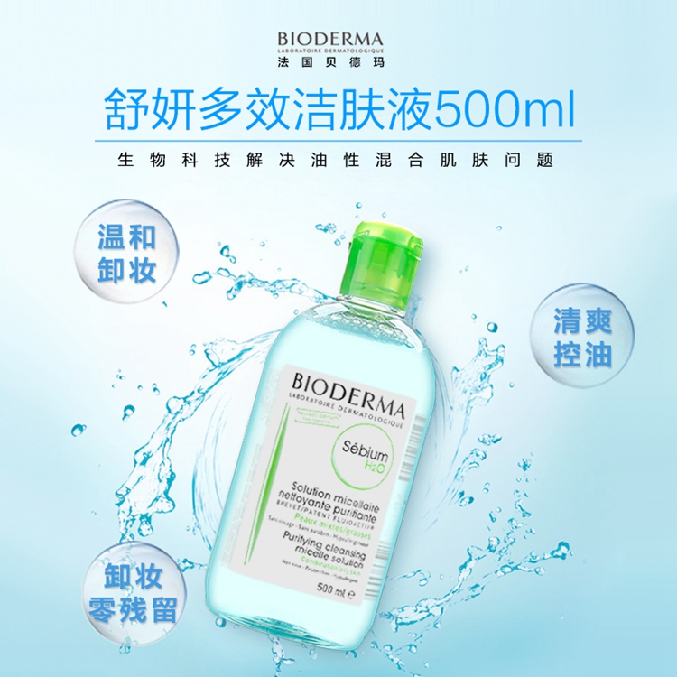 法国 Bioderma贝德玛 净妍洁肤卸妆水500ml 蓝水 温和 清爽 控油