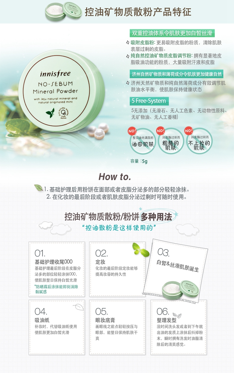 innisfree悦诗风吟控油薄荷矿物质散粉5g 蜜粉饼粉底定妆彩妆