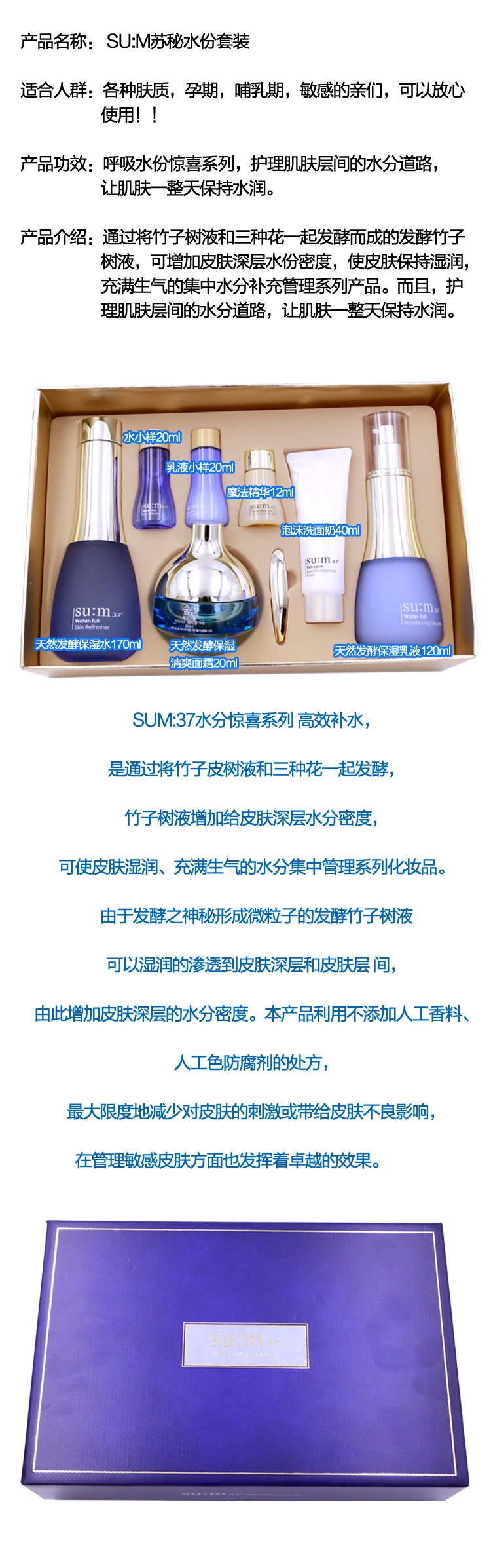 韩国正品sum37度呼吸水分惊喜蓝色保湿补水套盒孕妇套装