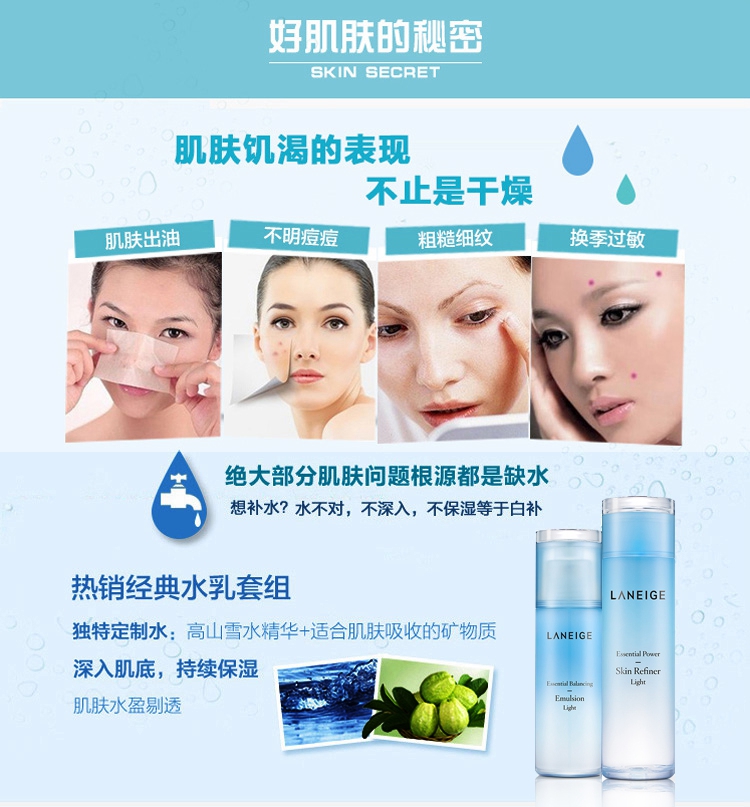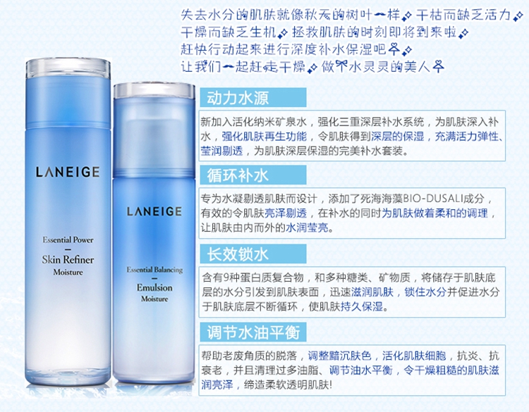 Laneige兰芝套装水库凝肌轻盈透润水乳补水保湿滋润型清爽型套盒