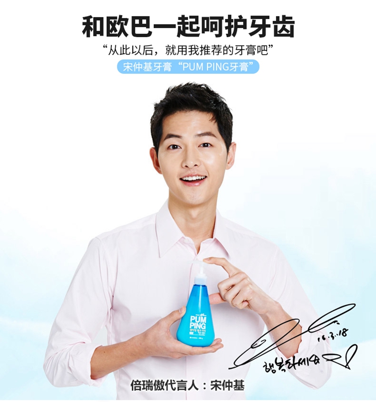 宋仲基代言 韩国进口LG牙膏倍瑞傲按压式...