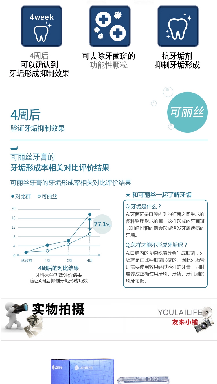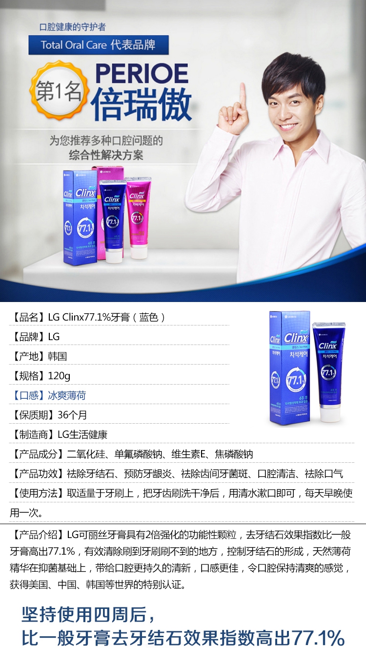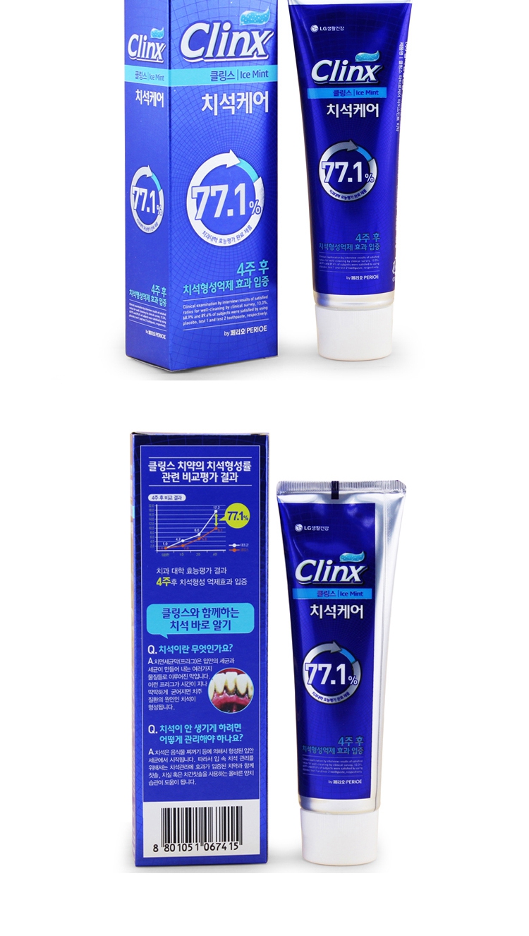 韩国进口正品LG Clinx颗粒丝77.1牙膏 美白去黄 去牙结石 薄荷香