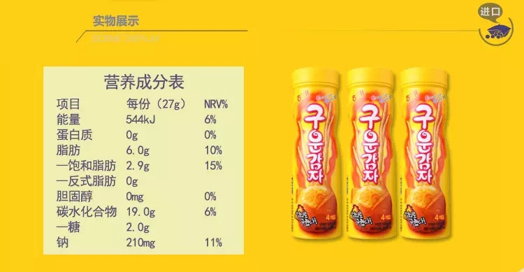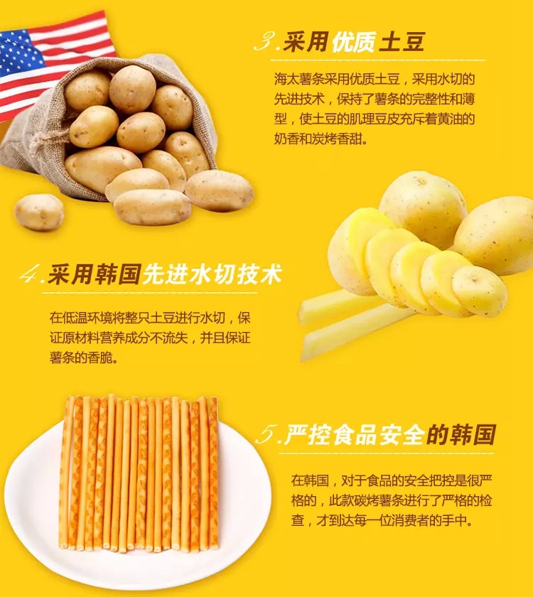 韩国进口零食 正品海太碳烤薯棒薯条108...