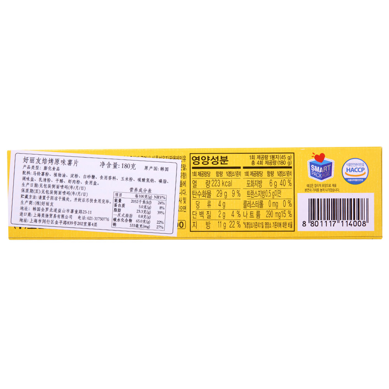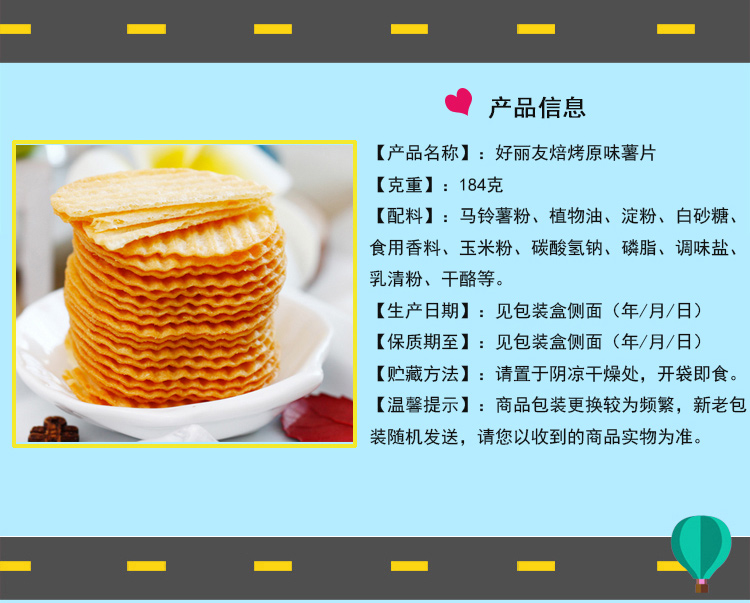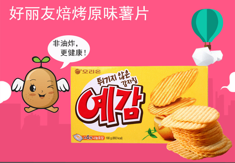 韩国进口零食品好丽友非油炸焙烤原味薯片184g