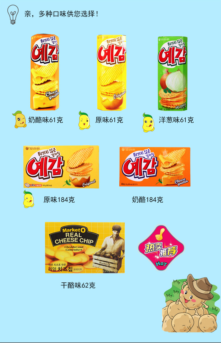韩国进口零食品好丽友非油炸焙烤原味薯片1...