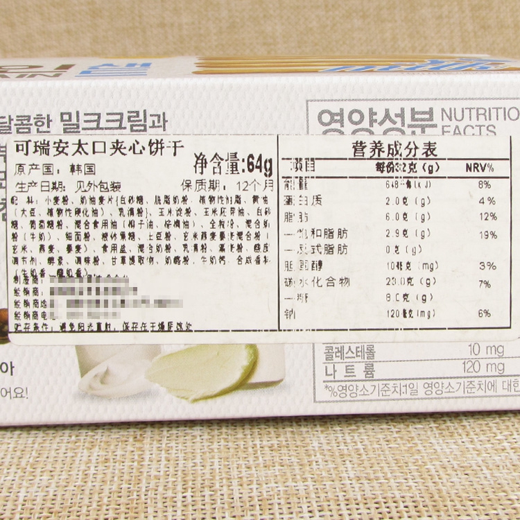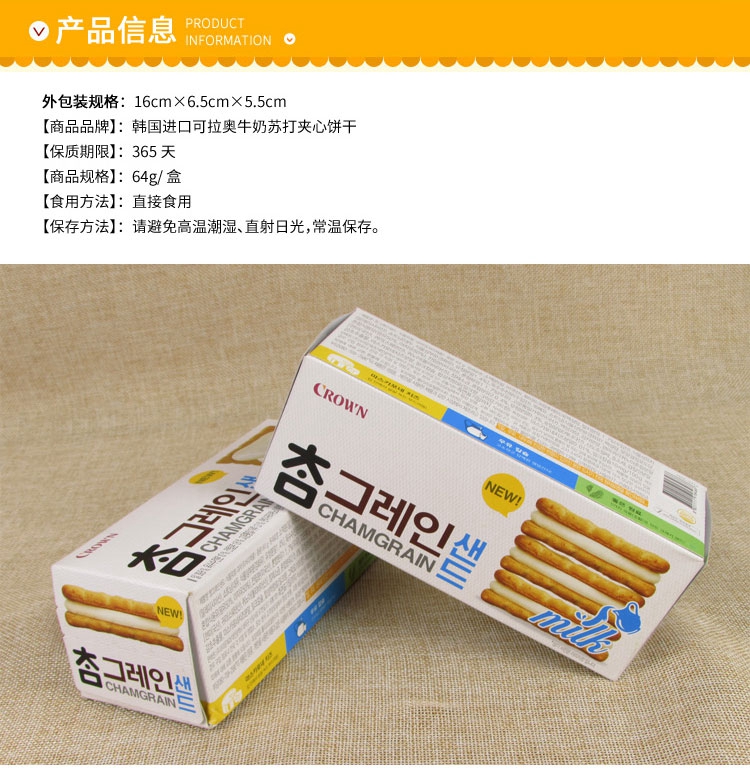 韩国进口零食 可拉奥牛奶苏打夹心饼干太口独立包装苏打饼干64g
