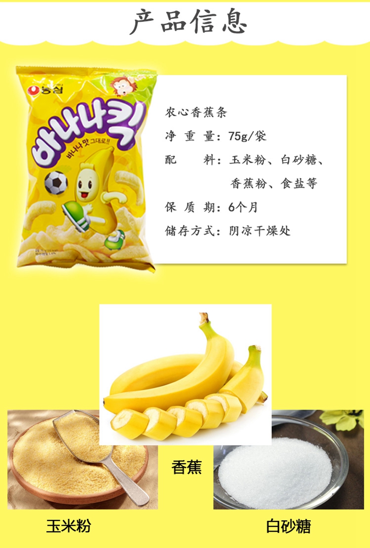 韩国进口农心香蕉味玉米脆条75g 香蕉脆...