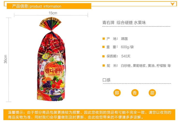 韩国进口喜糖 青右牌综合硬糖 水果味600g袋 休闲零食糖果