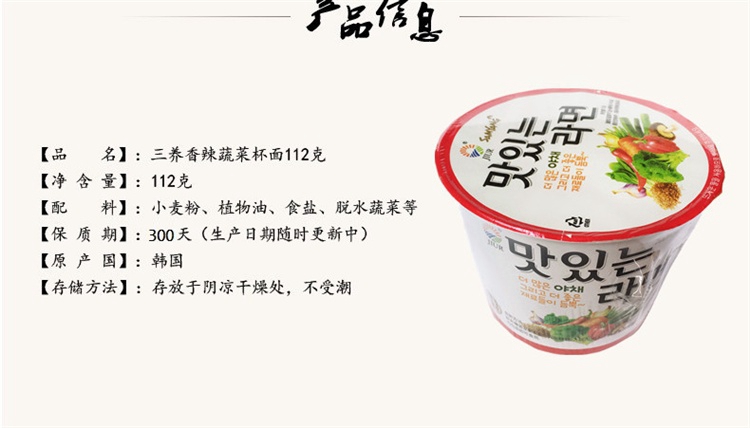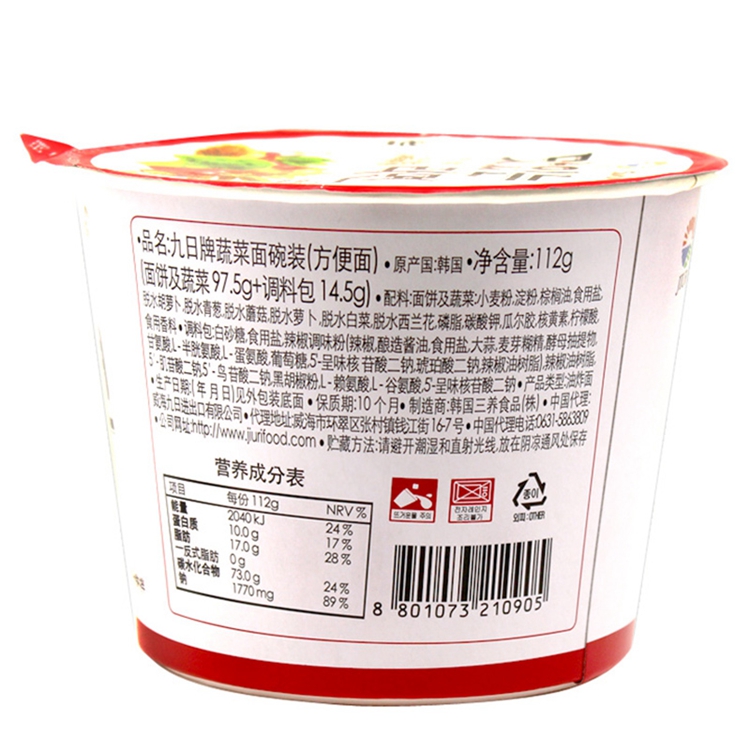韩国进口九日牌蔬菜面碗装方便面112g桶装正宗韩国即食拉面泡面