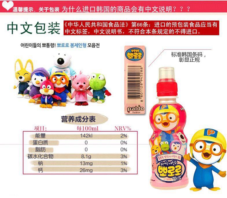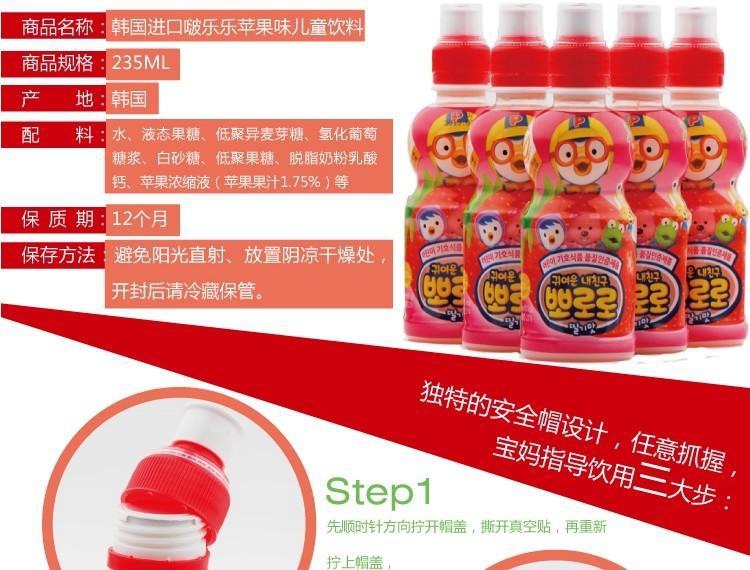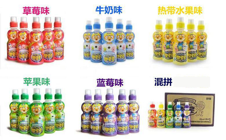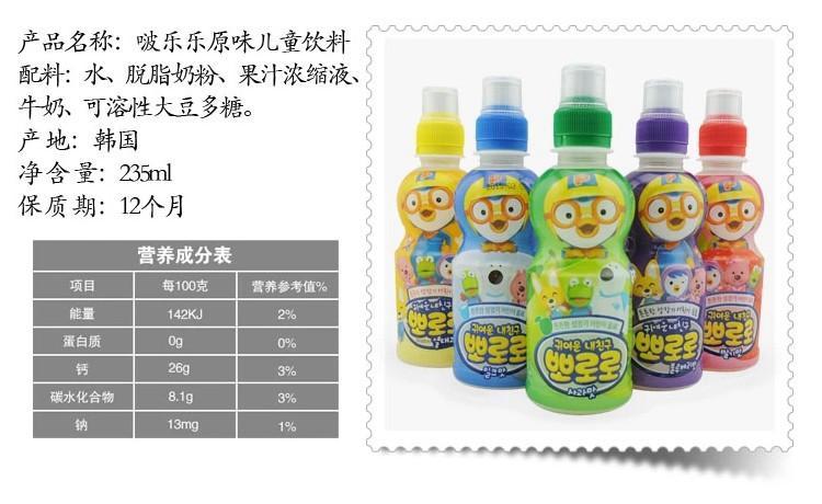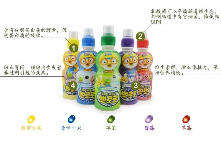 现货韩国小企鹅Proro啵乐乐 单瓶宝露露235ml儿童乳酸菌5款水果味饮料