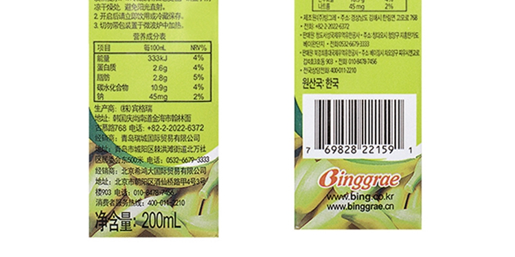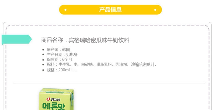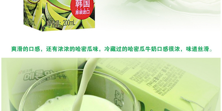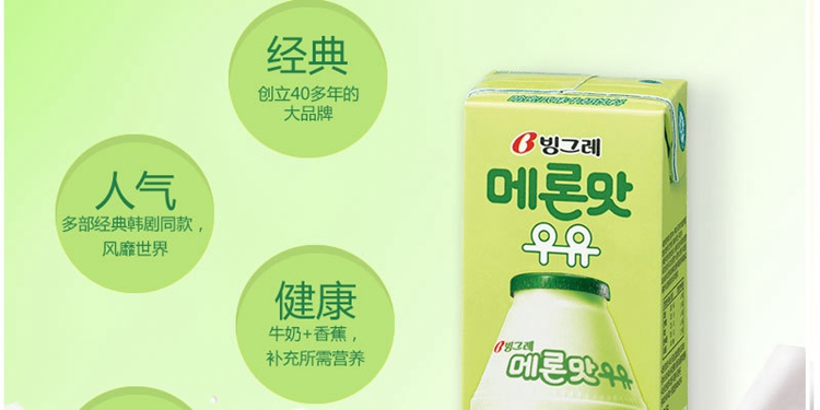 韩国进口 宾格瑞哈密瓜味牛奶饮料 香滑口感