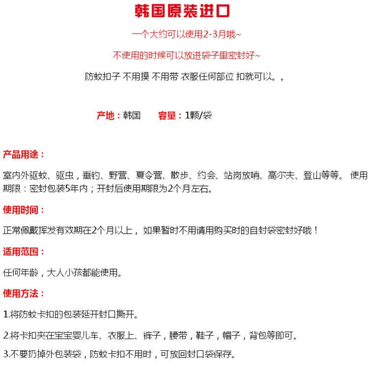 Pororo驱蚊扣婴儿童宝宝成人户外灭蚊植物精油防蚊链卡通韩国进口