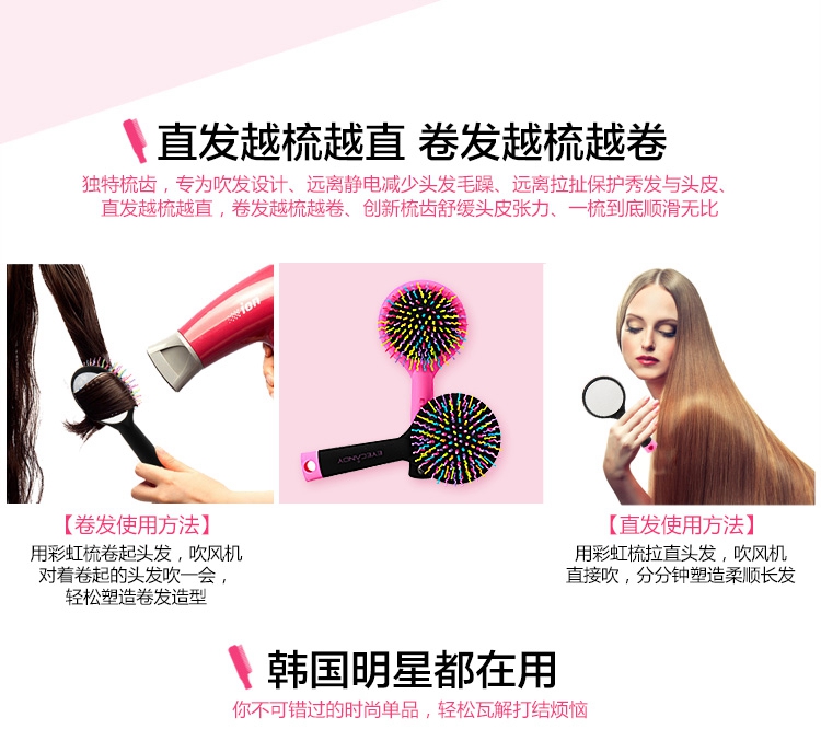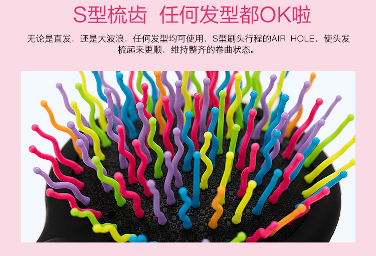 Eye Candy韩国彩虹丰盈S梳子按摩气囊梳减少静电大号9X20.5cm两色随机