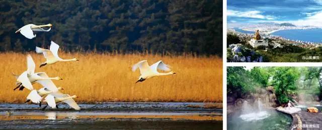 威海是中国著名的海滨旅游休闲度假胜地,绵延近千公里的海岸线,分布着185个岛屿和美丽的沙滩,境内散布着众多温泉,山、海、湾、滩、岛、泉交相辉映,展现着优美的海滨自然风光,是中国著名的温泉之乡,是亚洲最大的天鹅冬季栖息地。拥有5A级景区刘公岛、华夏城2处,4A级景区赤山风景区、成山头、银滩、大乳山、天沐温泉、仙姑顶等11处,以及天鹅湖、昆嵛山、国际海水浴场、威海公园、幸福公园等著名旅游景观。