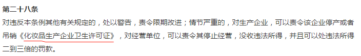 第十二条中的“卫生许可证”修改为“化妆品生产许可证”。