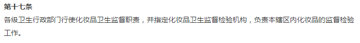 第十七条修改为:“各级化妆品监督管理部门行使化妆品卫生监督职责。”