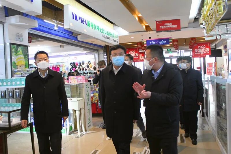 王鲁明书记走进商场详细了解了韩国商品交易中心近期的发展状况,得知商户们因疫情受到影响后,叮嘱商场要坚定信心、克服困难,商场要在保顾客和商场商户安全的前提下,开足马力平稳健康的运行。