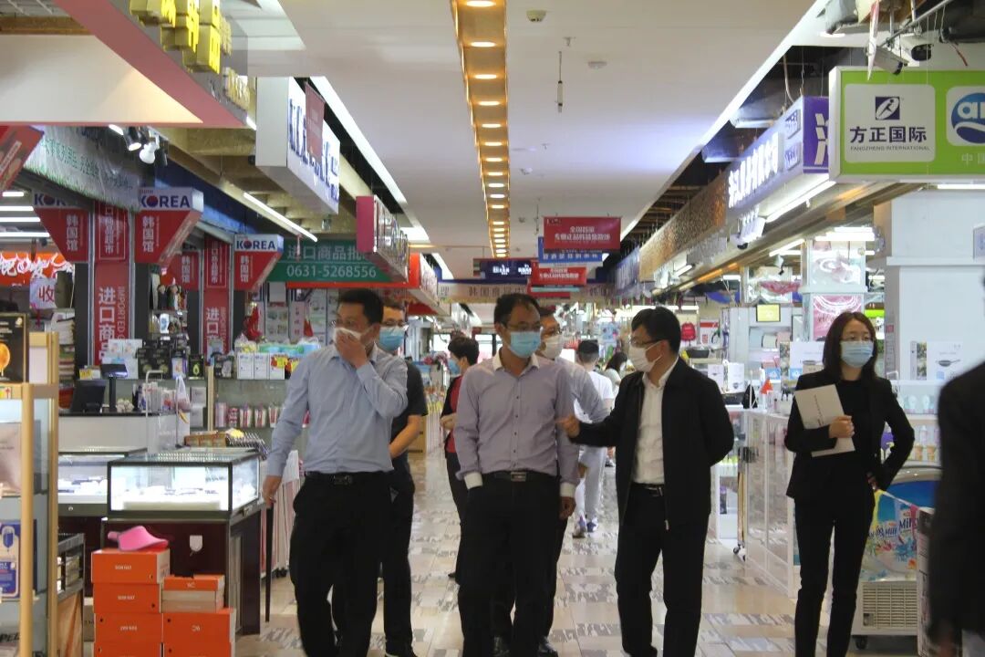 2020年5月29日,山东功能区对外开放合作联盟第一届秘书处 (青岛国际经济合作区管理委员会)中德生态园发展研究中心负责人宗博一行五人在经区管委副主任李英春等领导陪同下至韩国商品交易中心参观考察。交易中心运营经理荆继国陪同参观并详细介绍商场的整体运营情况及发展规划。